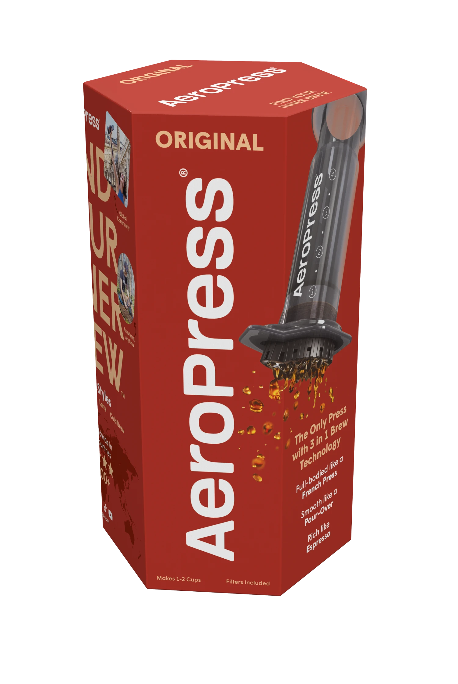The AeroPress extracts a double espresso. Hot water can be added to create an Americano or top the drink off with milk to make a latte.