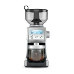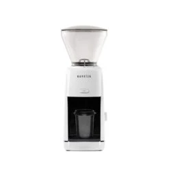 The bean hopper has a generous 7.8oz capacity and is clear, allowing you to easily monitor the contents. This model has 12 grind settings; simply twist the bean hopper container to fine-tune your grind. The burrs rotate at 720rpm to deliver consistent and uniform coffee grinds. Unlike most grinders, which have plastic ground coffee containers, the Bodum Bistro Burr Grinder features an 11oz container made of borosilicate glass to keep your coffee static free. The Bistro’s ground-coffee container even has a slip resistant silicone sleeve for your convenience.