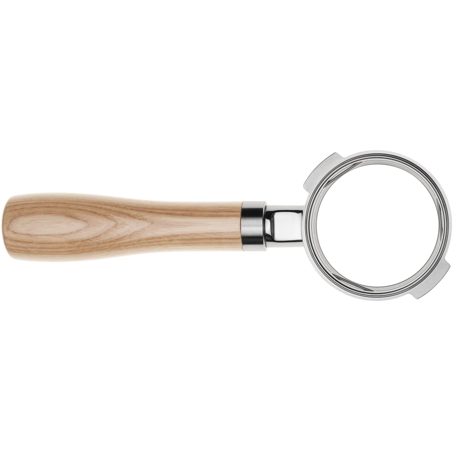 Designed by Gaggia for their Classic Pro espresso machine, the Gaggia Wooden Handle Bottomless Portafilter is a beautiful addition to your espresso setup. The bottomless design helps you diagnose flaws in your extraction to optimize your shots. The design also adds more clearance for cups and allows for the use of triple shot baskets. For maximum heat retention, the filter head is made from chrome-plated brass, while the handle stays on brand with Gaggia logo cut into the end.