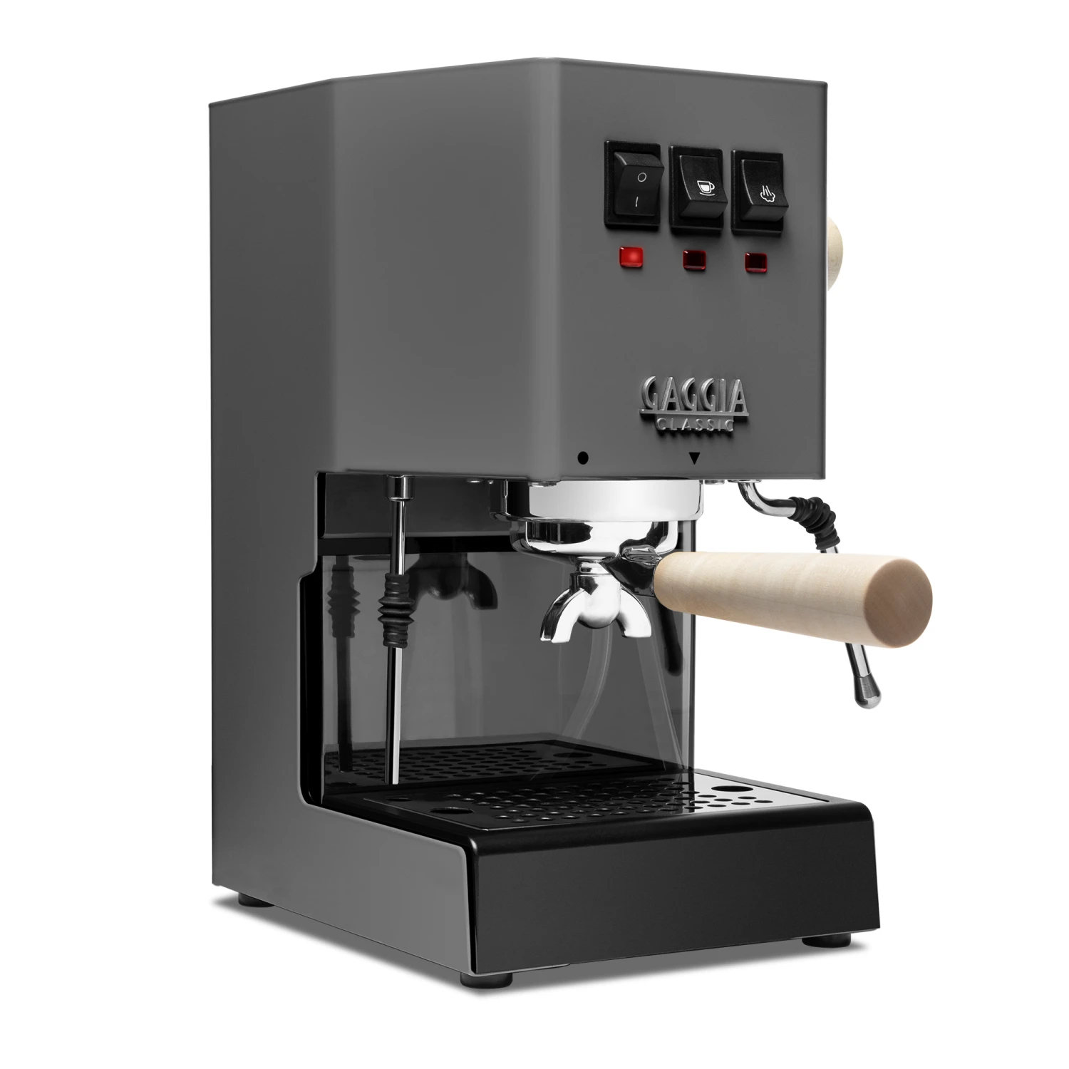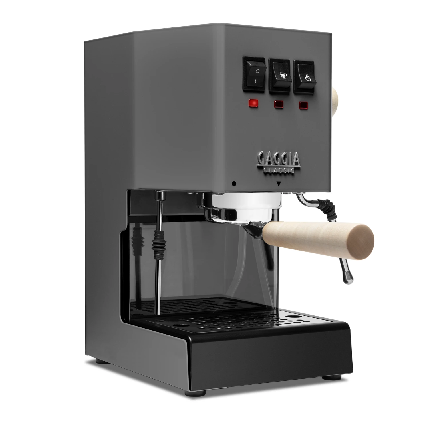 Gaggia Classic Evo Pro Espresso Machine In Industrial Grey With Tiger Maple