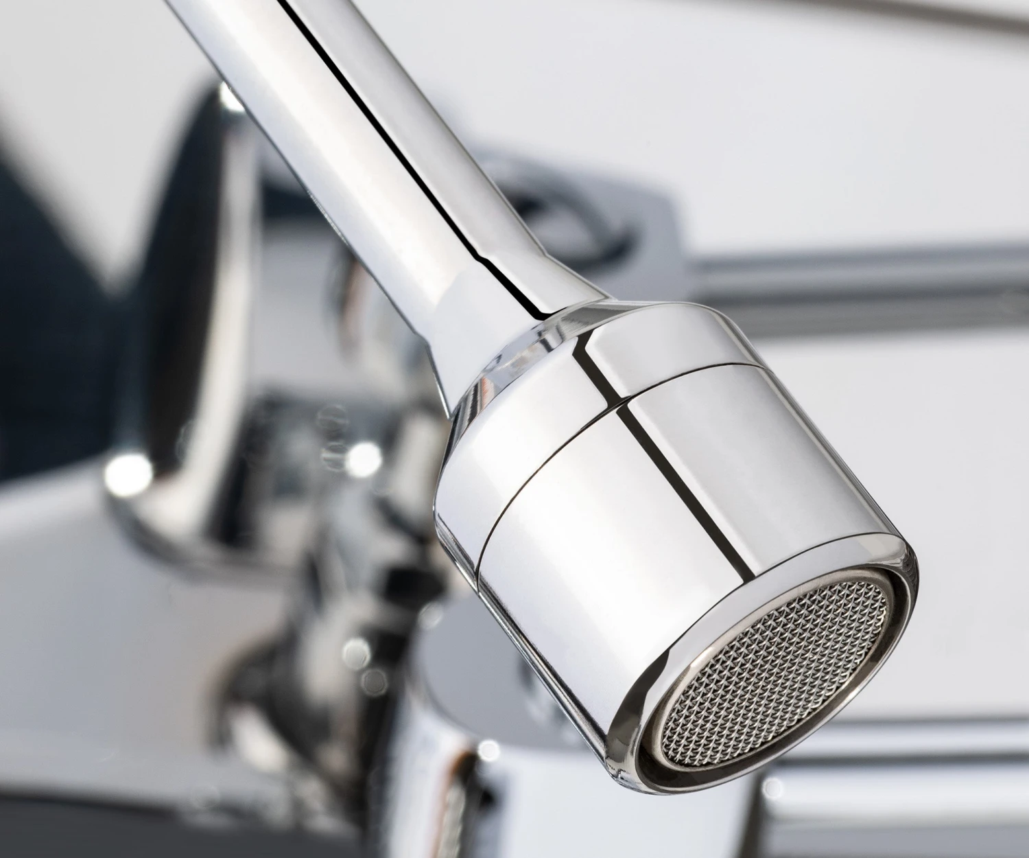 From the outside, the housing is constructed of polished stainless steel, and the side cutouts reveal a modern matte black panel. These panels in combination with the distinctively shaped steam and hot water arms make for a stand out addition to any counter top.