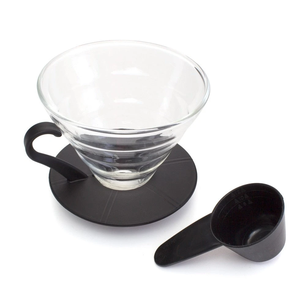 Crafted from hand-blown borosilicate glass, the Yama 2 – 4 Cup Glass dripper is ideal for pour over coffee brewing at home or in cafes. This sturdy piece of equipment is both microwave and dishwasher safe, making it easy to clean. Each dripper includes a measuring scoop and is compatible for use with the Yama Glass Decanter and fits Hario V60 02 filters.